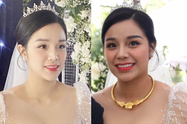 Trong ngày trọng đại, Tư Dũng diện vest bảnh bao, xuất hiện bên cô dâu xinh đẹp. Về phần Khánh Linh, cô diện chiếc váy được thiết kế riêng, để lộ vòng 1 căng tràn.