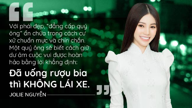 Jolie Nguyễn - Hoa hậu người Việt tại Úc năm 2015 đại diện cho góc nhìn hiện đại và sâu sắc của phái đẹp về sự đẳng cấp của đấng mày râu qua tinh thần “Uống có trách nhiệm”.