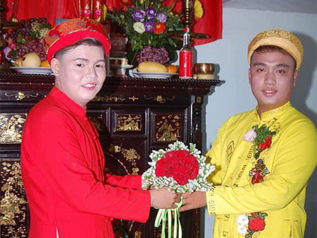 Quốc Khánh - một trong hai chàng trai cho hay họ biết nhau một thời gian trước khi tiến tới hôn nhân."Để có một đám cưới như vậy, chúng mình phải trải qua không ít gian nan, thử thách. Khoảng thời gian tìm hiểu không quá dài nhưng cũng đủ để cả hai thấu hiểu, tin tưởng lẫn nhau. Tình cảm không phải là trò đùa nên mình và Lợi rất nghiêm túc, trân trọng", chàng trai trẻ chia sẻ thêm.