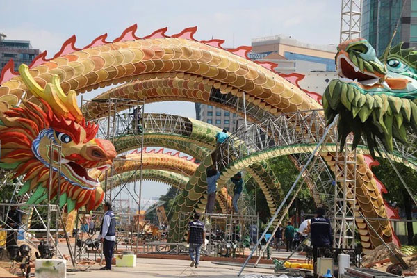 Nhân dịp Tết Nguyên đán Giáp Thìn, phía công ty cho nhân viên trang trí thêm để hai con rồng bắt mắt hơn. Ông Bảo cho hay, quan điểm xấu hay đẹp thì tùy vào mỗi người.