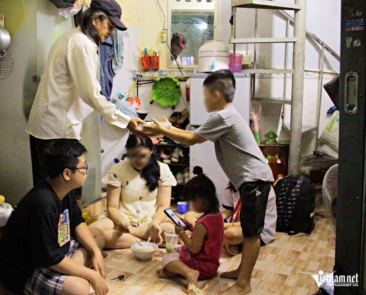 Cuối ngày, Hùng Phúc (áo đen) dành ít phút chăm sóc các cháu, rồi ra đường chạy xe ôm công nghệ. Ảnh: Hà Nguyễn
