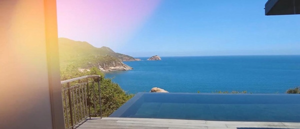 View từ căn biệt thự ven biển nơi Xemesis và Xoài Non lưu trú vô cùng tuyệt đẹp, có cả bể bơi vô cực xịn sò.