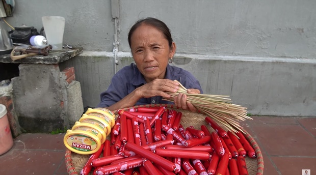 Nướng xúc xích ăn liền với bơ trên đá quả thật là một ý tưởng sáng tạo quá khác biệt. Thông thường, để nướng xúc xích, người ta sẽ dùng loại có vỏ dày rồi nướng chín là vừa nhưng bà Tân lại dùng xúc xích ăn liền - loại chỉ cần bóc vỏ và ăn luôn. Điều này cũng lý giải vì sao khi nướng, món xúc xích của bà Tân lại mềm oặt và dễ bị gãy như trong clip.