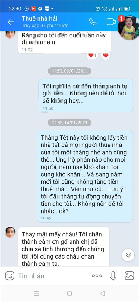 Tin nhắn người lao động thuê nhà cảm ơn lòng tốt của anh Minh