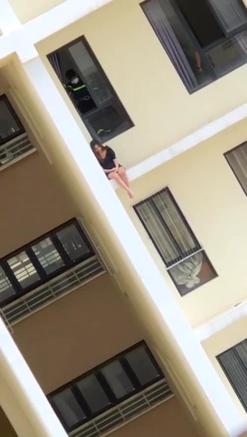 Clip: Thất tình, cô gái ngồi vắt vẻo ở ban công chung cư khiến nhiều người hết hồn