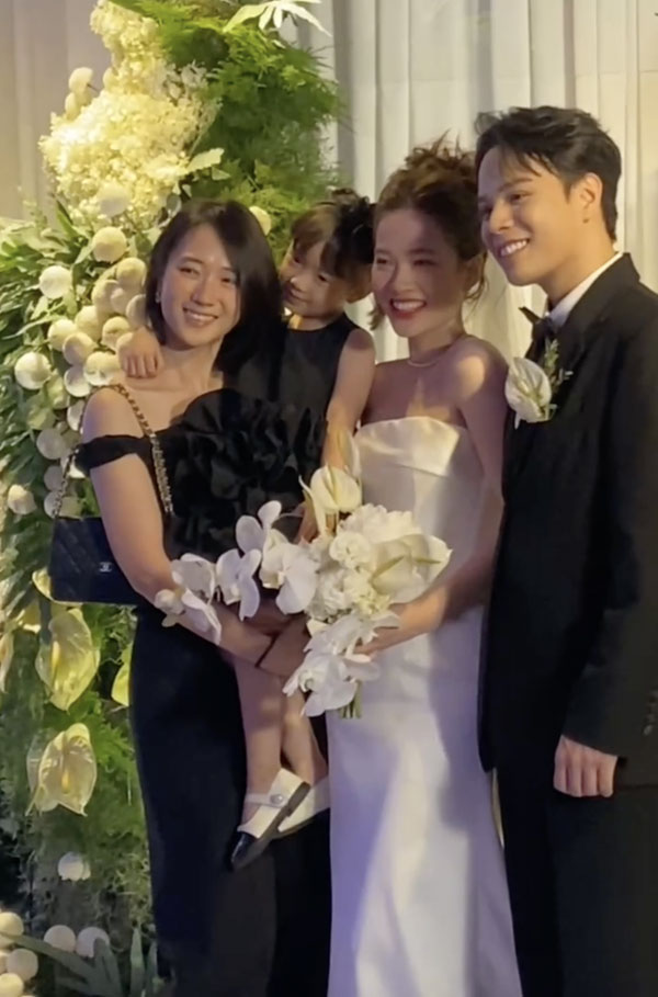 Tối 11/6, đám cưới của cặp đôi Jaykii - Mai Anh diễn ra tại TPHCM với nhiều nghệ sĩ, người nổi tiếng đến chung vui. Đáng chú ý nhất là sự xuất hiện của vợ và con gái JustaTee. Trâm Anh cùng bé Cici Anh Chi chiếm trọn spotlight khi diện trang phục đồng màu.