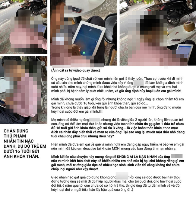 Bên cạnh đó, trên trang Zalo của mình, kẻ này đăng bâng quơ: "Cuộc đời mình buồn vui sướng khổ đều nếm trải. Hiện nay muốn chia sẻ, truyền đạt cho các em gái đủ điều kiện, để cùng nhau hưởng thụ cuộc sống ngắn ngủi này. Không phải khổ lụy về tình yêu mê muội, chơi cho sướng bản thân mình trước, sau đó kiếm thêm thu nhập, khỏi để nhà lo".