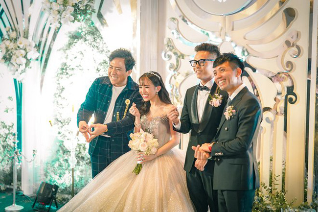 Ông ngoại Minh Nhựa bảnh bao trong lễ đầy tháng của cháu ngoại Jayden.
