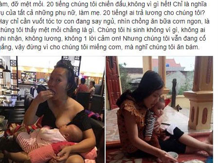 Việc nhà quá sức thì phải có chồng chia sẻ, không làm được thì thuê người. Con cái cũng vậy, đâu phải con là của riêng mẹ, bố chỉ có trách nhiệm đứng tên trên giấy khai sinh. Chính cái sự ôm hết vào mình của phụ nữ đẩy họ vào cái sự khổ chẳng biết than cùng ai. Và lý do lớn nhất khiến họ không có tiếng nói, tự nhận cái hy sinh vất vả đấy vào mình chính là vì một chữ “tiền”.