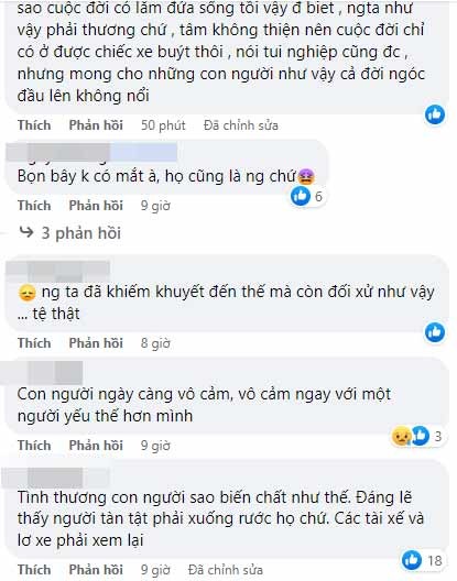 - Tình thương con người sao biến chất như thế. Đáng lẽ thấy người tàn tật phải xuống rước họ chứ. Các tài xế và lơ xe phải xem lại - tài khoản D.P bình luận.