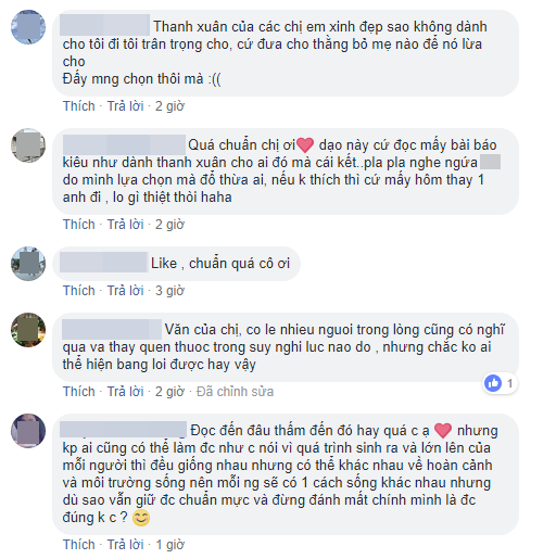 Dù chẳng biết Oanh đã từng gặp cảnh bị phản bội hay bỏ rơi như nhiều cô gái trẻ "lãng phí thanh xuân" cho ai đó hay không, nhưng quả thực từng câu chữ cô viết ra quá đúng đắn, bóc trần hết những góc khuất ảo tưởng mà lắm nàng vẫn ôm ấp trong lòng bấy lâu.