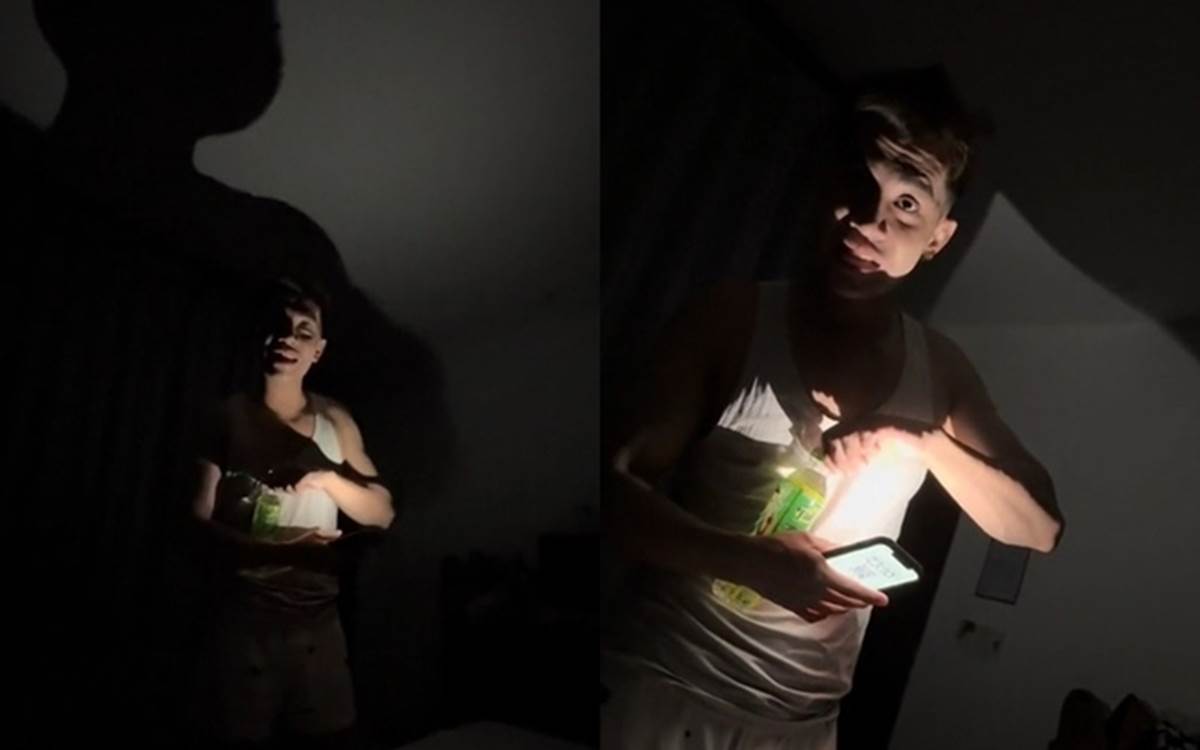 Muốn nấu ăn nhưng mất điện thì phải làm sao, chị em lại phải soi đèn flash cho nhau. Mà rõ ràng xa xa kia cũng thấy bóng dáng của điện, chỉ có nơi ở của nhóm này là "im thin thít". (Nguồn: @n26072001).