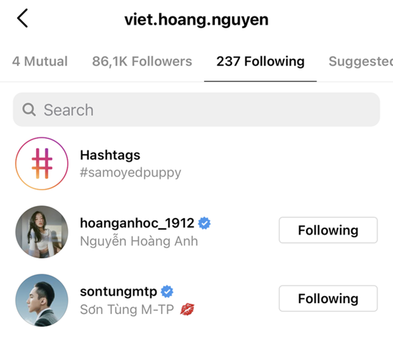 Có vẻ như Sơn Tùng follow hay unfollow cô gái nào không ảnh hưởng gì đến Việt Hoàng vì anh chàng vốn chẳng follow người nào cả