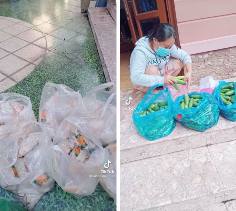 Chị chủ trọ tốt bụng cho gạo, thịt, rau giúp người thuê trọ.