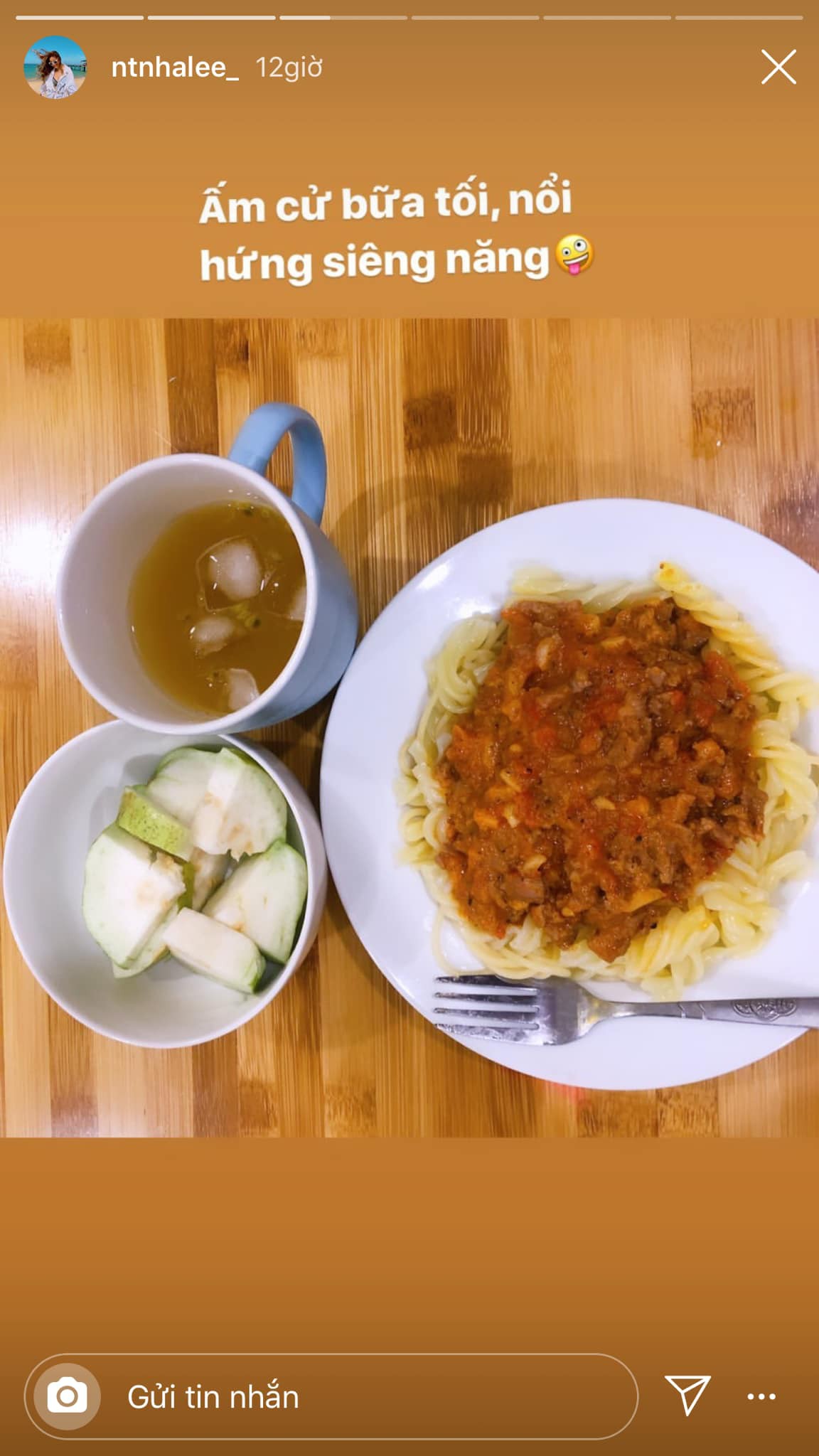 Và hiện tại, Nhật Lê cũng không có động thái gì bất thường. Cô nàng chăm chỉ update story Instagram cho thấy mình vẫn rất ổn. Nhật Lê tự nấu bữa tối, 1 mình thưởng thức. Sau đó, lên đồ thật chất đi dạo phố, ngồi trà đá và cà phê cùng bạn bè.