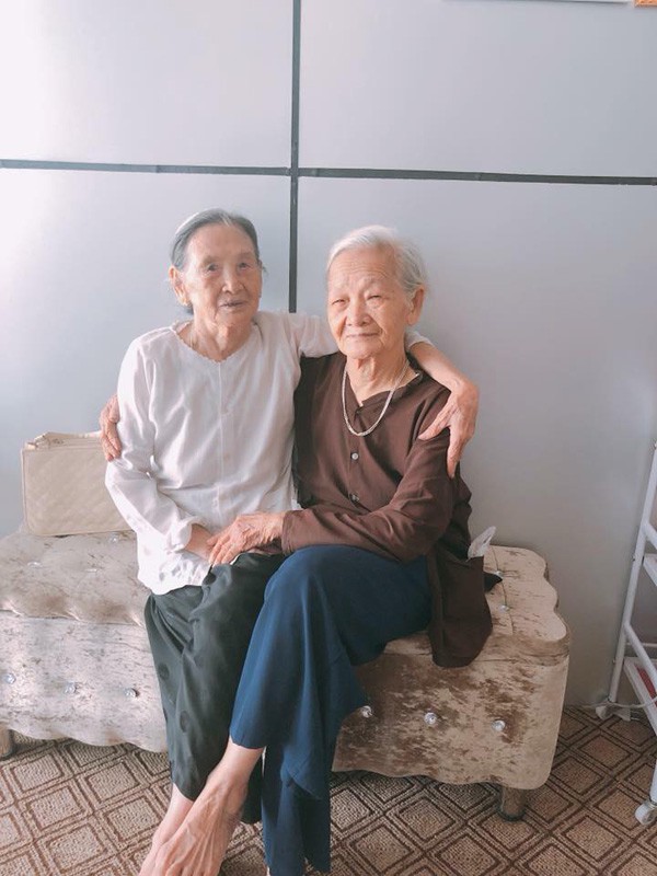 Được biết, cụ bà có tên là Nguyễn Thị Mai Anh (áo nâu) và chị gái bà tên là Nguyễn Thị Mai Oanh (áo trắng), hiện cả hai bà đều đang sống tại Sầm Sơn, Thanh Hóa. Theo chị Hoa - cháu ngoại bà, bà không chỉ thường xuyên chăm sóc da, bà còn có thói quen ăn uống khoa học, tập thể dục đều đặn mỗi ngày để có sức khỏe dẻo dai.