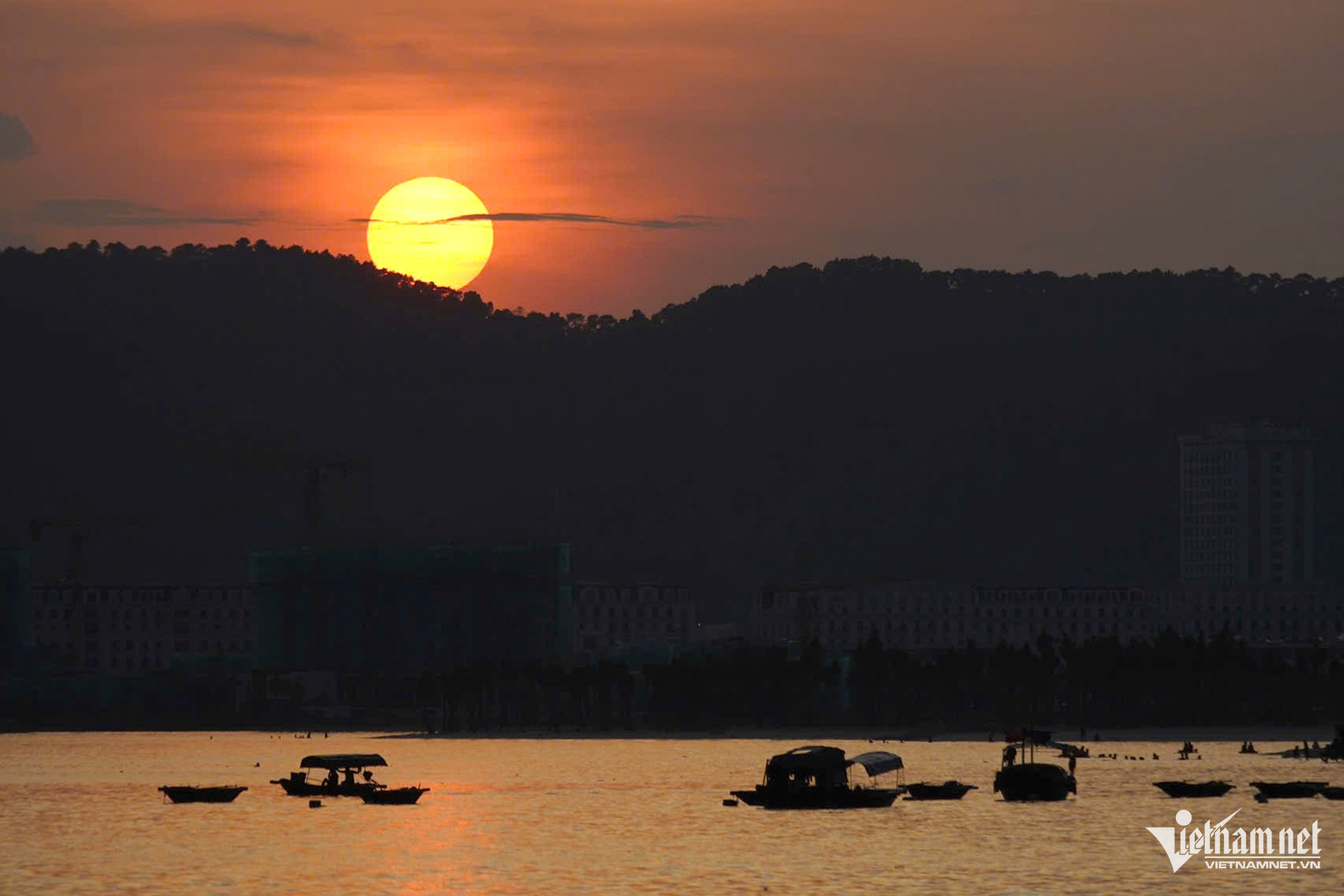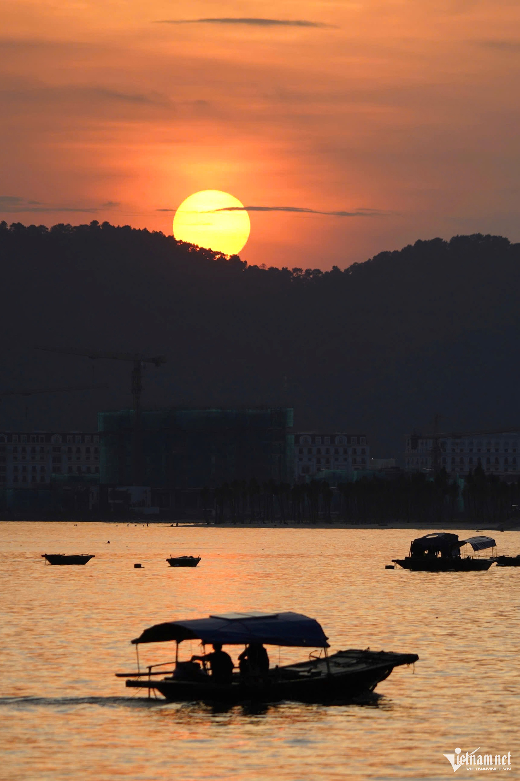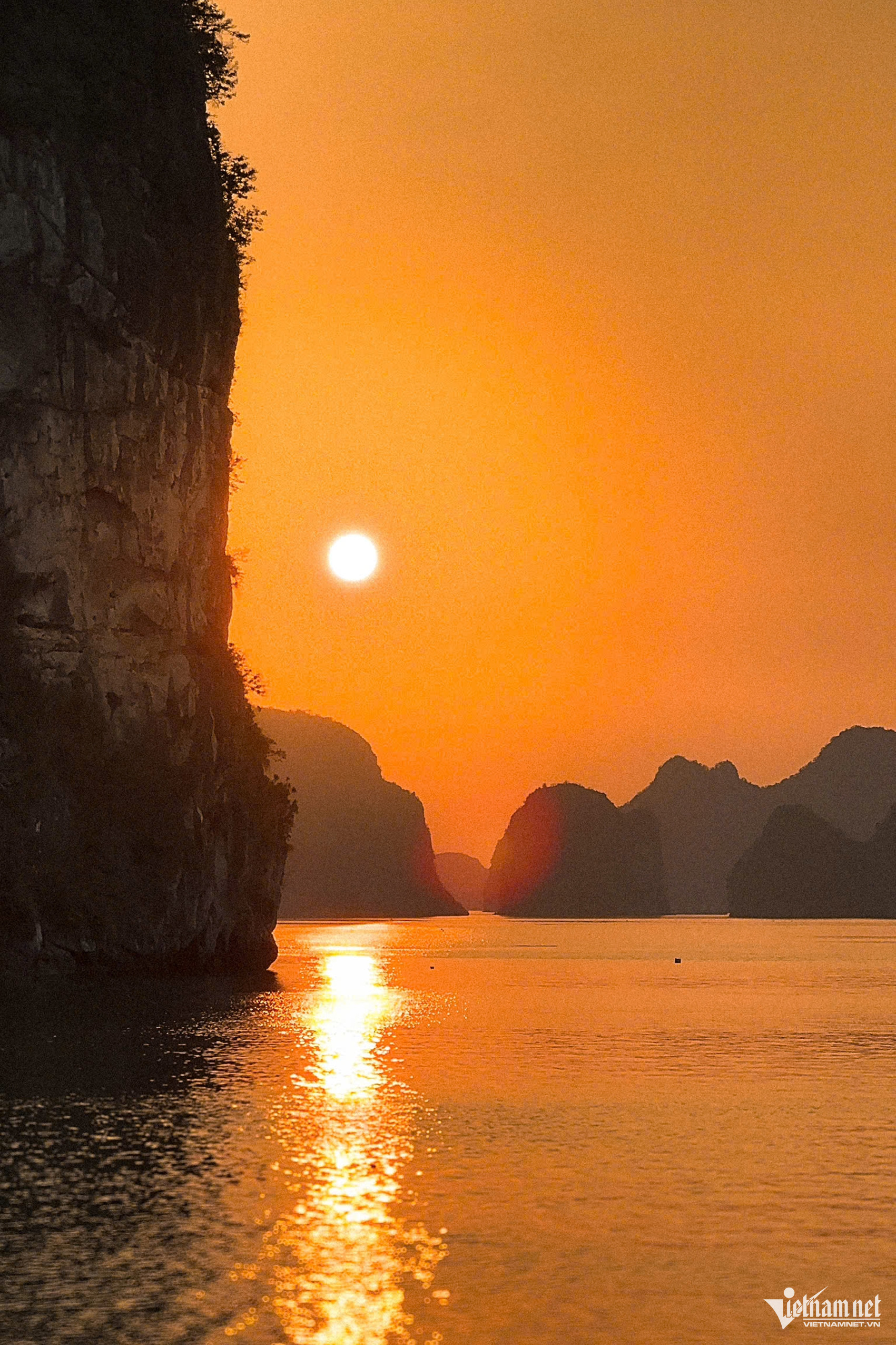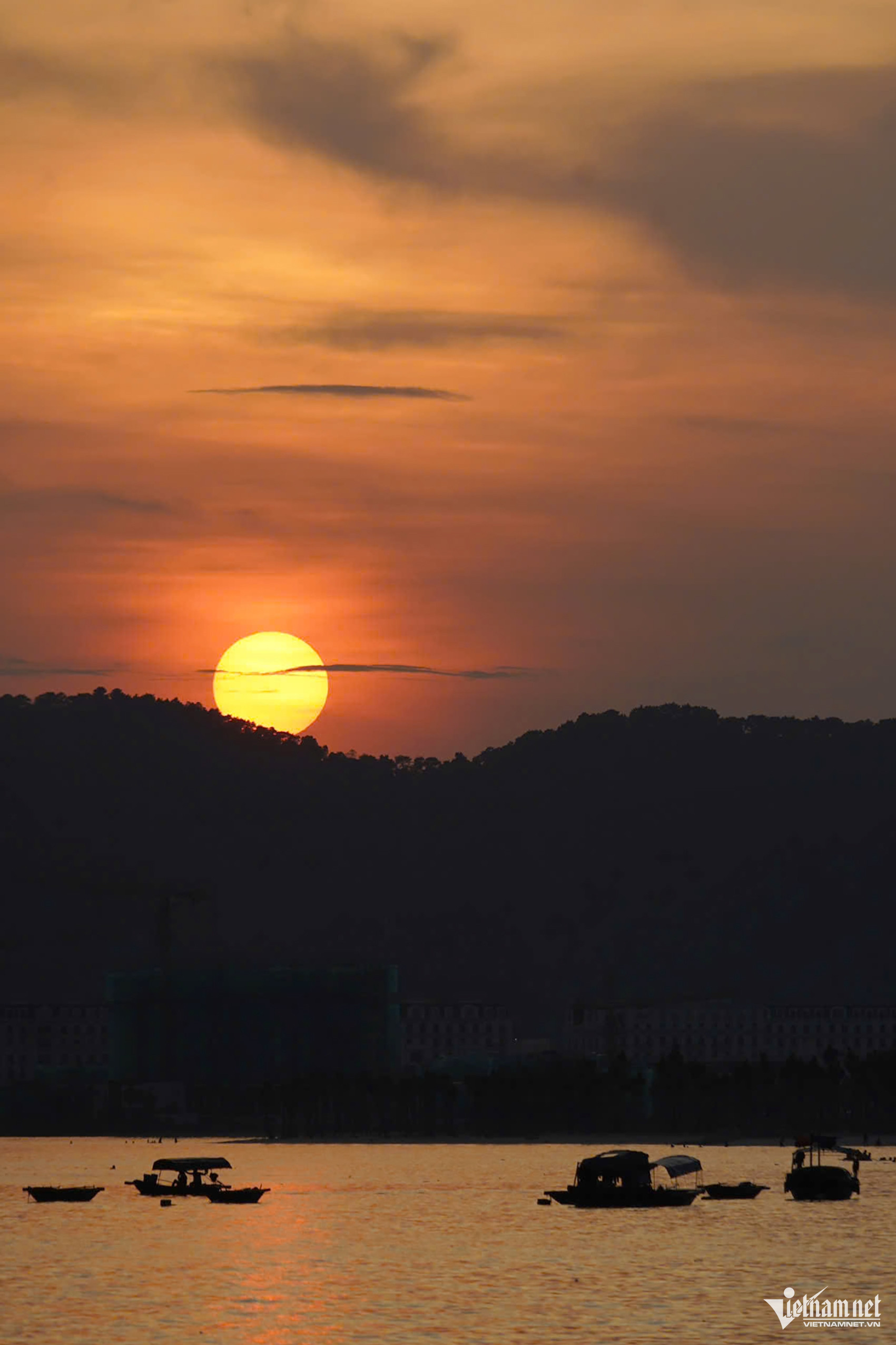 Mùa hoàng hôn đẹp nhất ở Hạ Long khi trời trong, nhìn rõ mặt trời to và tròn. Ảnh: Phạm Công