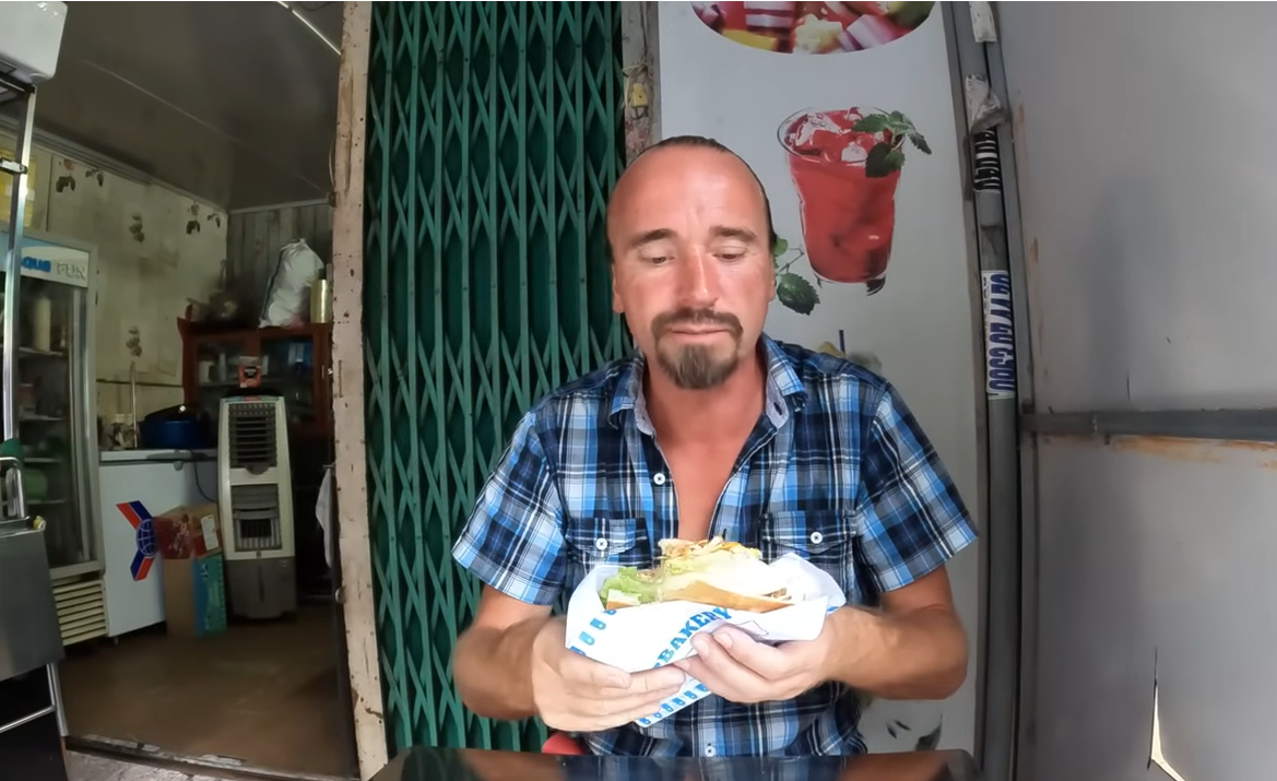 Bữa đầu tiên, Anna quyết định tới quầy bánh mì vỉa hè ngay gần khách sạn mà họ lưu trú để ăn sáng. Cô gọi 1 phần bánh mì chả kèm trứng ốp la, giá 20.000 đồng.