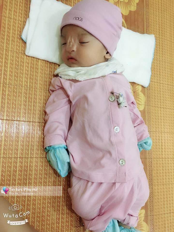 Chị kể nhiều khi bé đang nhấp từng ngụm sữa ngon thì bị, sữa trào ngược lên hốc mũi dị tật bé xíu. Nhìn con nước mắt, nước mũi hòa lẫn với sữa trào ra khiến chị nghẹn ngào. Biết bao đêm chị không thể ngủ ngon giấc. Cũng từ ngày xuất viên về nhà, ít khi chị bế con ra ngoài vì ái ngại những ánh mắt thương hại của hàng xóm.