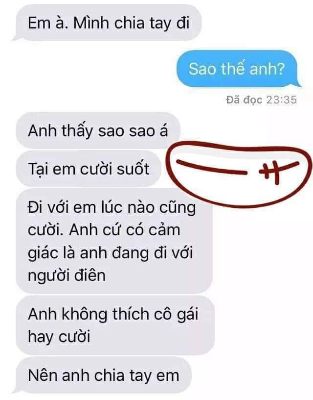 Con gái đẹp nhất khi cười, điều này được rất nhiều người công nhận. Tuy nhiên, trong vô vàn những người yêu nụ cười của con gái ấy, vẫn có những cá thể cảm thấy "dị ứng" với một cô gái luôn nở nụ cười trên môi. Đơn cử, vừa mới đây, trong một hội nhóm kín trên mạng xã hội quy tụ đông đảo bạn trẻ theo dõi, một thành viên đã được dịp chia sẻ một câu chuyện khiến dân mạng không biết nên ứng xử thế nào cho phải. Cụ thể, có một cô gái bị bạn trai mình nói lời chia tay vì lý do cứ cười suốt. Anh bạn trai không thích một cô gái hay cười và cảm thấy bạn gái mình như người điên khi cứ luôn miệng cười.