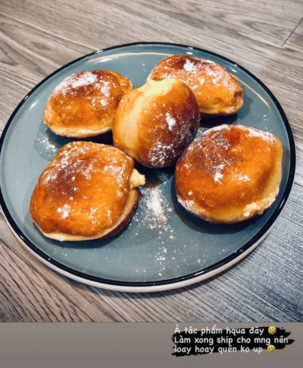 Đêm khuya rồi mà cô nàng còn hì hục nhào bột làm bánh donut su kem. Cách đây mấy hôm thì cho ra đời một mẻ bánh castella trông ngon lành chẳng khác gì mua ở tiệm. Dân tình hài hước cho rằng Thu Hoài nói "ở nhà chỉ thích dính vào bếp" ý là muốn làm vợ lắm rồi anh giám đốc à, nhanh nhanh đưa người ra về dinh đi!