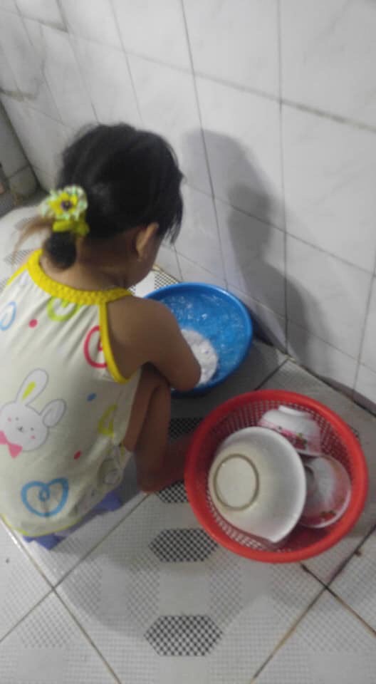 Nhiều người không thể tin cô bé chỉ mới 4 tuổi nhưng đã có thể sơ chế rau củ, tôm thịt, rửa bát, phơi đồ, phân loại áo quần cất vào tủ, thậm chí chăm mẹ trong bệnh viện.