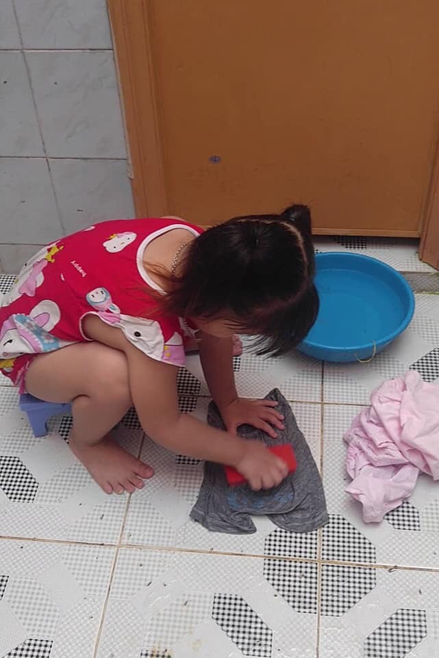 Thực ra chuyện bé làm việc nhà đã từ cả năm nay, chẳng qua hiện tại mình ở nhà có bán hàng online kiếm thêm thu nhập nên mọi người mới cho rằng mình mượn cớ thu hút sự chú ý.