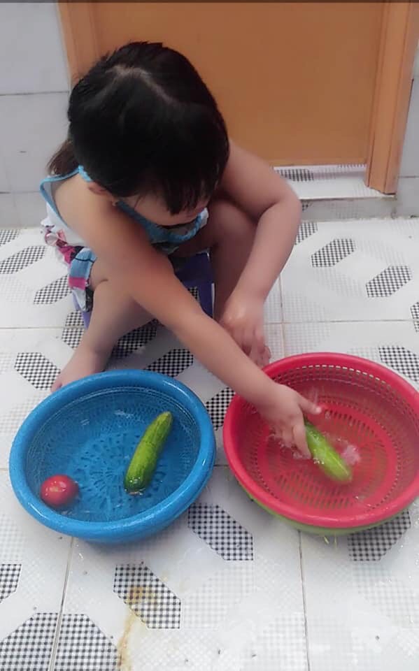Mai dậy, chắc em của mẹ lại mệt mỏi lắm, 1 đứa trẻ 2 tuổi đã phải học cách làm việc nhà, 3 tuổi quen hết các việc lặt vặt trong nhà, từ cái dơ nhất là chà nhà tắm đến sơ chế rau củ.
