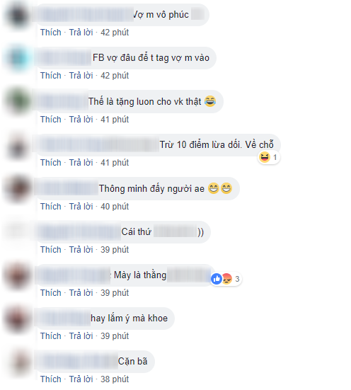 Tất nhiên, với sự tinh tế và cao tay trong cái trò qua mặt vợ bên trên, anh chàng nọ cứ tưởng mình được khen khi đăng đàn sẻ chia trong một hội nhóm có rất đông thành viên trên mạng xã hội. Nhưng đáng tiếc là dân mạng, nhất là chị em phụ nữ đã nóng bừng mặt, tức tối giùm cô vợ kia mà thẳng tay mắng mỏ, ném đá.