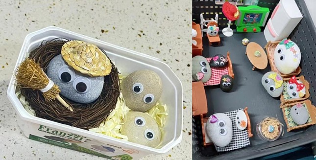 Bộ sưu tập "gia đình đá cưng" của một cô gái. Ảnh: Xiaohongshu