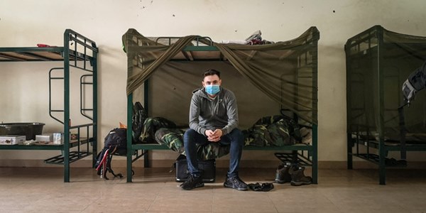Chúng tôi được đưa đến nơi như là cổng vận chuyển hàng hóa. Hộ chiếu được đặt trong chiếc túi màu vàng và cảm giác có vẻ nghiêm trọng. Khi được đưa ra khỏi sân bay, chúng tôi đều suy nghĩ về những gì có thể xảy ra. Chúng tôi sẽ được ăn uống đầy đủ chứ? Chúng tôi liệu có phải ở gần với người bệnh không? Không gian bắt đầu thay đổi từ đường phố tấp nập trở thành đường cao tốc rồi đến vùng nông thôn, cho tới khi chúng tôi cập bến ở một căn cứ quân sự.