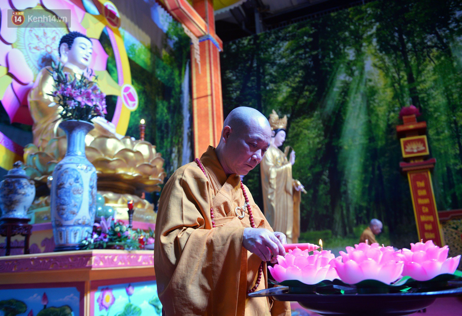 Sư thầy thắp nến hoa sen bắt đầu buổi lễ.