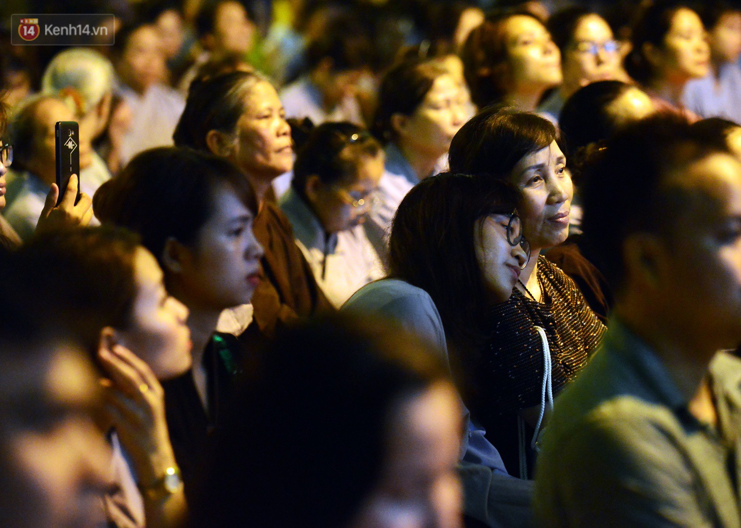 Bà Hằng hệt như một đứa trẻ con khi nhắc tới cha mẹ mình. Đôi mắt sáng rực, miệng cười chúm chím. Dù trước đó chỉ vài phút thôi, dưới hàng ghế của các phật tử khuôn mặt bà in hằn những giọt nước mắt.
