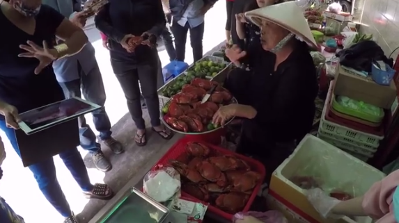 Và đúng 12 rưỡi, khi mâm cua của dì Ba vừa đặt xuống vệ đường, nhiều người đã nhanh chân chen lấn, tranh nhau để mua ký cua ưng ý.