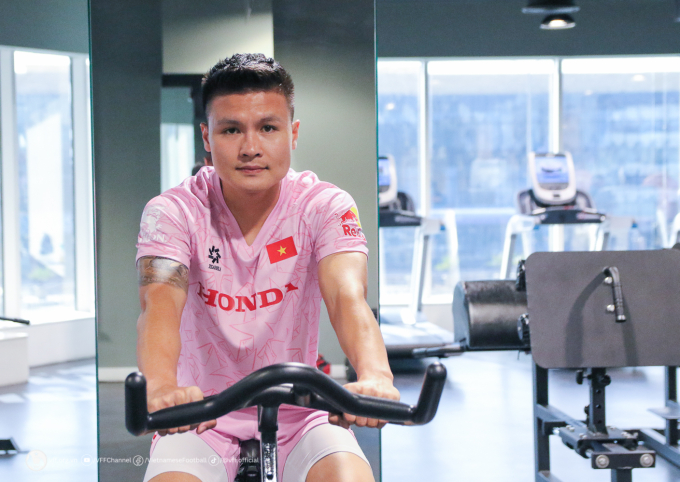 Quang Hải tập gym cùng tuyển Việt Nam (Ảnh: VFF)