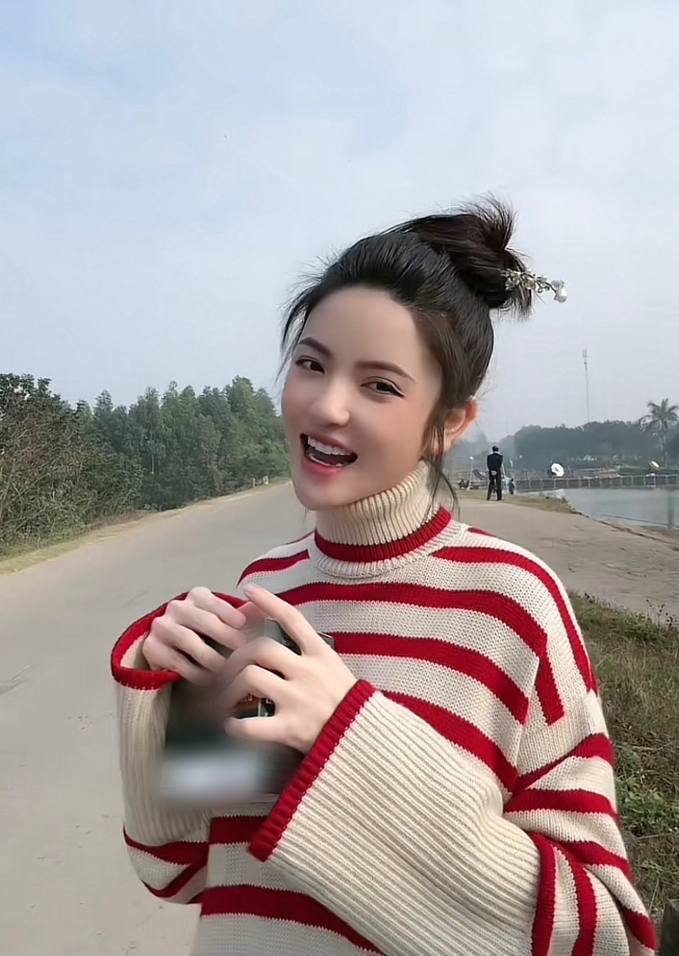 "Em đố các chị em mình biết em Huyền đang ở đâu, em đang ở đê Đường Nhạn mang đồ về cho mẹ đây các chị ơi" , Thanh Huyền quay video nói.