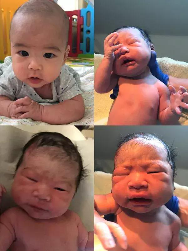 Ảnh chụp cậu bé khi vừa ra đời và sau đó vài tháng.