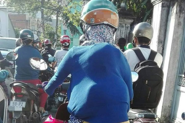 - Cô gái ngồi ôm eo thế kia nguy hiểm quá. Sau hôm nay đừng về mắng bạn trai nhé.