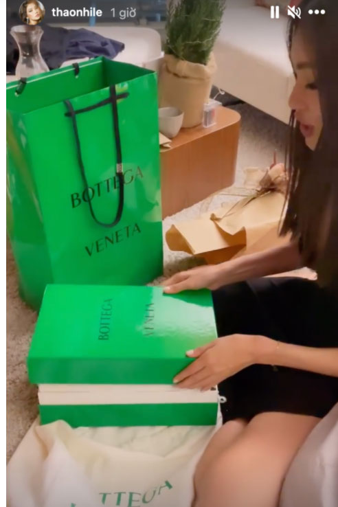 Thảo Nhi Lê khoe bóc túi quà trên Instagram được anh chủ quán bar tặng