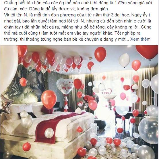 Tin nhắn gửi đi tôi tắt máy đưa vợ đi ngủ. Đêm tân hôn của tôi vẫn diễn ra suôn sẻ, ngọt ngào. Tuy ban đầu cảm xúc có hỗn độn một chút nhưng tất cả đều đã ổn. Quan trọng là tôi biết, N. yêu và tôn trọng tôi. Cuộc sống hôn nhân chỉ cần có vậy. Quá khứ là quá khứ, tôi không muốn bới sâu. Các ông cũng thế nhé, đành rằng đau thật nhưng cần nhìn vào thực tế vợ chồng mới lâu bền được".