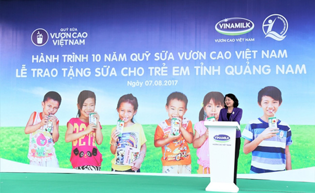 Năm 2017 đánh dấu cột mốc 10 năm hành trình trao sữa của Vinamilk đồng hành cùng Quỹ sữa Vươn cao Việt Nam kiên trì và bền bỉ thực hiện sứ mệnh “Để mọi trẻ em Việt Nam đều được uống sữa mỗi ngày”. Trong năm 2017 này, Quỹ sữa Vươn cao Việt Nam và Vinamilk sẽ dành 1,4 triệu ly sữa tương đương 9 tỷ đồng tặng cho 16.000 trẻ em Việt Nam.