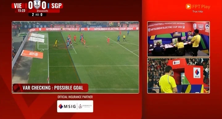 Các cổ động viên và cầu thủ 2 đội trải qua 7 phút hồi hộp khi trọng tài nghe VAR và ra ngoài biên xem lại băng hình. Cuối cùng, đội tuyển Việt Nam thoát bàn thua do Harun việt vị. Cầu thủ Singapore đứng dưới cầu thủ Việt Nam cuối cùng ở thời điểm đồng đội thực hiện pha dứt điểm đầu tiên.