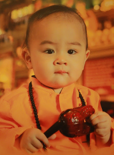 Bé Hữu đã tham gia một nghi lễ nhỏ trong tiệc thôi nôi, lựa chọn ngẫu nhiên món đồ mà bé thích trong số rất nhiều thứ mà gia đình bày ra. Khi đó, vợ chồng ông Dũng đã rất bất ngờ khi thấy con trai nắm ngay lấy chuỗi tràng hạt đầu tiên và sau đó là chiếc chuông đồng nhỏ. Ông bà cho rằng đó là duyên của bé với đạo Phật mà vợ chồng họ tin theo bấy lâu, nên ông Dũng đã đưa ra tuyên bố khiến hàng nghìn khách mời có mặt trong bữa tiệc ngỡ ngàng.