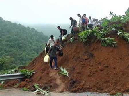 Theo TTXVN, tại hai điểm đầu đoạn đường sạt lở có hàng trăm phương
