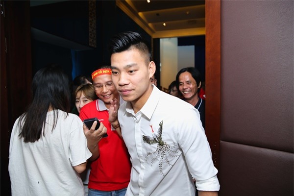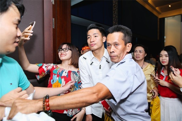 Xuân Trường bị vây quanh bởi người hâm mộ, ai cũng muốn có cho mình được chữ kí cũng như hình ảnh chụp cùng.