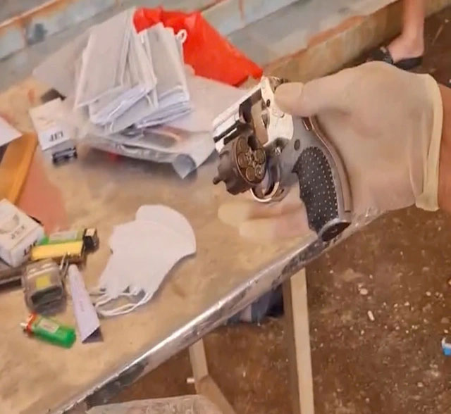 Sau khi tai nạn xảy ra, lực lượng CSGT có mặt tại hiện trường và tiến hành test nhanh đối tượng Đảm thì xác định đối tượng này dương tính với ma túy. Kiểm tra trên người Đảm, công an thu giữ 1 khẩu súng Rulo được giấu trong quần trong cùng 5 viên đạn. Trong ba lô phát hiện 2 gói tinh thể màu vàng nghi vấn là ma túy.