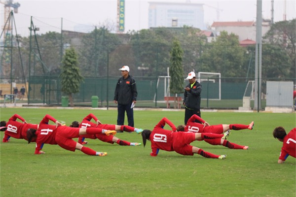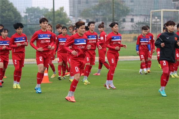 Thời tiết tại Hà Nội chuyển rét đậm kèm sương mù trong ngày hôm nay gây một chút trở ngại cho các cầu thủ. Để quen dần với cái lạnh, HLV trưởng Mai Đức Chung dành 30 phút cho các học trò thực hiện các bài tập khởi động, làm nóng cơ thể. Điểm thuận lợi là sau dịp Tết Nguyên Đán 2017, các cầu thủ nữ đã duy trì tập luyện ngay cùng các CLB nên đã bắt nhịp nhanh với các bài tập ở đội tuyển.