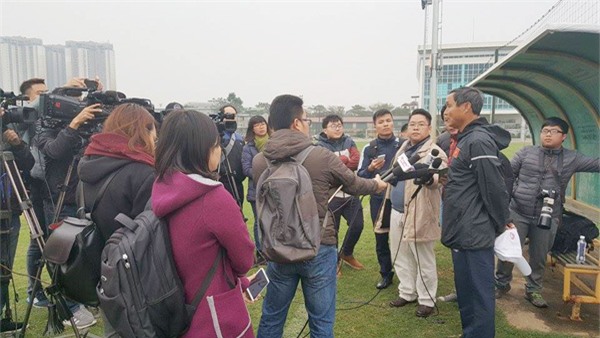 Đông đảo phóng viên báo chí trong buổi tập đầu tiên của ĐT nữ QG