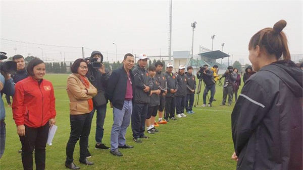 Cũng nhận được sự quan tâm của báo chí, trong khi thủ thành Kiều Trinh cho biết đã khá quen với các lần tập trung ở đội tuyển Quốc gia và bày tỏ sẽ tiếp tục cố gắng, quyết tâm cùng toàn đội thì những cầu thủ trẻ như Hà Thị Nhài hay Đỗ Thị Nguyên đều cảm thấy khá hồi hộp và bỡ ngỡ trong lần đầu tập trung. Trong khi Đỗ Thị Nguyên đã từng được gọi lên tuyển dưới thời HLV Trần Vân Phát thì cầu thủ Hà Thị Nhài cũng cảm thấy rất vui khi nhận được sự hỗ trợ của các chị lớn tuổi trong đội. Buổi tập đầu tiên trở nên thoải mái hơn khi các cầu thủ trẻ được các thầy trong BHL chỉ dẫn cụ thể và tận tình.