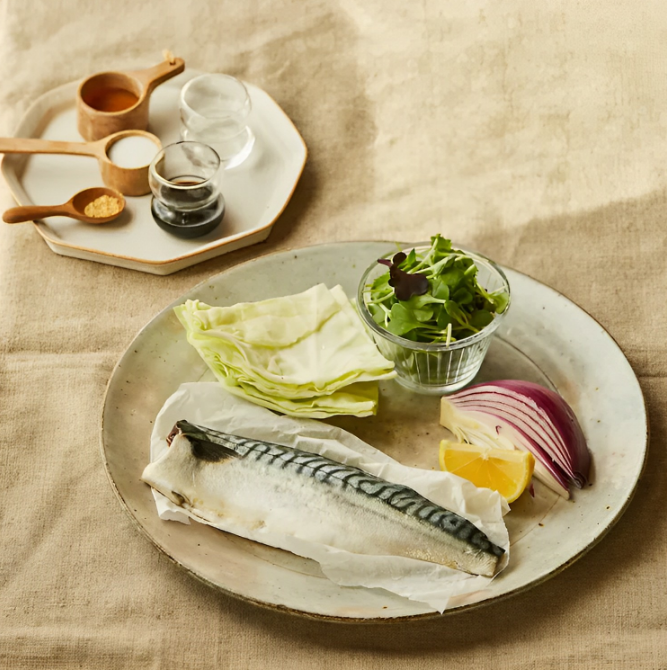 Bước 4: Lấy cơm ra bát, thêm một thìa nước sốt, sau đó cho bắp cải, rau xanh, hành tím, chanh và cá thu lên trên cùng là bạn có thể thưởng thức ngay được rồi.